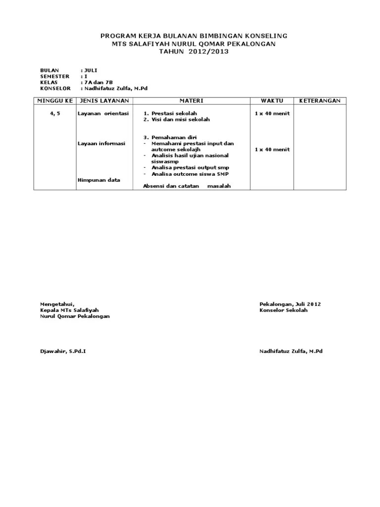 Adapun tugas dan fungsi guru bk adalah : Program kerja bidang kurikulum merupakan uraian kerja, tujuan, indikator. (0231) 204397 kota cirebon halaman pengesahan program kerja ketua kompetensi keahlian rekayasa perangkat lunak smk muhammadiyah . Merupakan program bp/bk smk negeri 5 surakarta untuk menjalin silaturahmi, kerjasama, pemberian informasi dan komunikasi serta koordinasi antara pihak . Melakukan studi kelayakan dan needs assessment pelayanan bimbingan dan konseling.